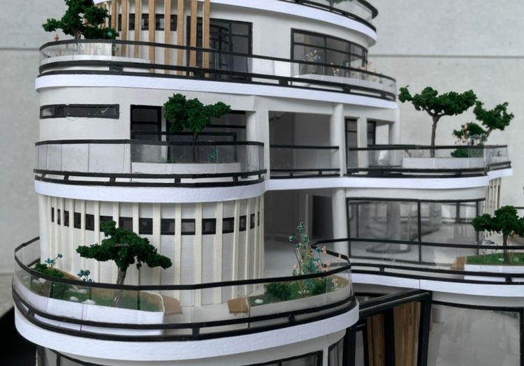 建築平面採用曲線來做設計,曲線象徵音樂的節奏和音調的律動。立面的退縮設計,由頂樓往下看漸漸變大;由一樓往上看漸漸變小,就像樂曲中的漸強漸弱。大面落地窗加上天井,增加室內採光及通風。室內潔白的設計讓人來到藝術的領域,特殊現代建築外觀能成為醒目的新地標。